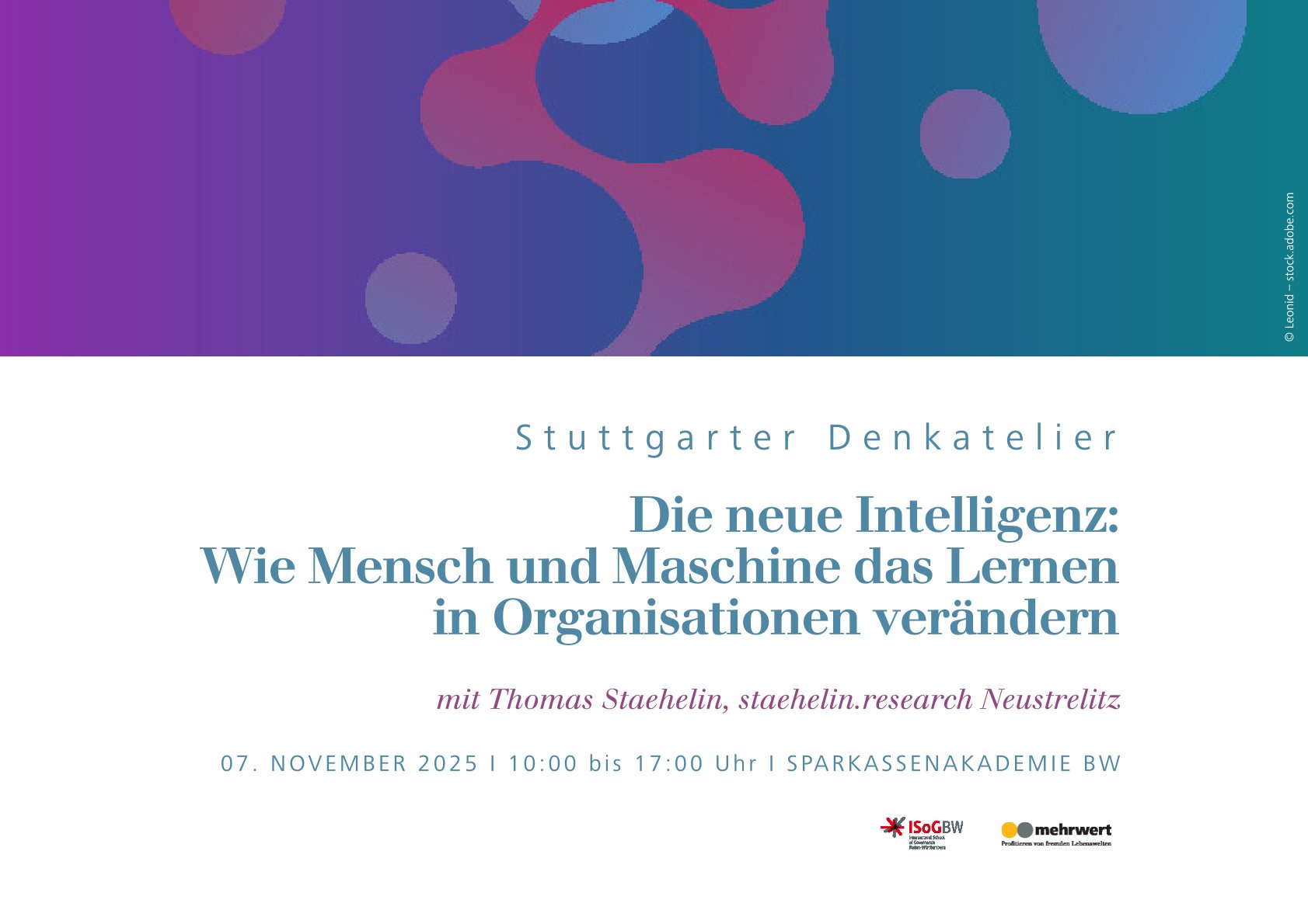 Das Stuttgarter Denkatelier ist ein intersektoraler Denkraum für Austausch, Analyse und neue Impulse. Als kuratiertes Format bringt es einmal im Jahr Perspektiven aus Wirtschaft, Wissenschaft, Zivilgesellschaft, Verwaltung und Kirche zusammen – mit dem Ziel, gesellschaftliche Fragen gemeinsam zu durchdenken und Orientierung für die Praxis zu gewinnen. Ein Forum für Entscheiderinnen und Entscheider, die über den Tellerrand blicken.
